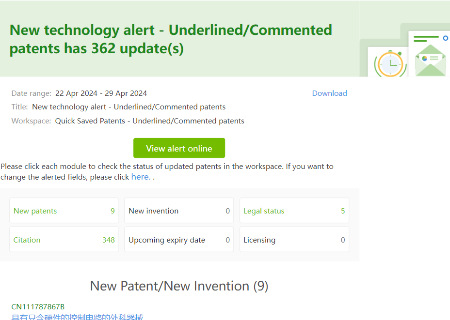 Once you have set up your email alert you will receive the email alert when you requested for it to come through and it will look something like this: