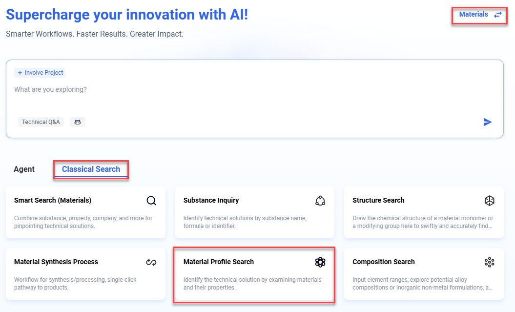 Go to the Materials module in Eureka, and find "Material Profile Search" under the "Classical Search" tab: