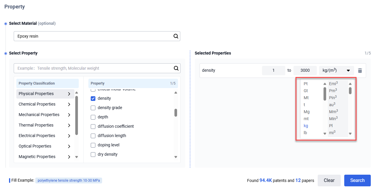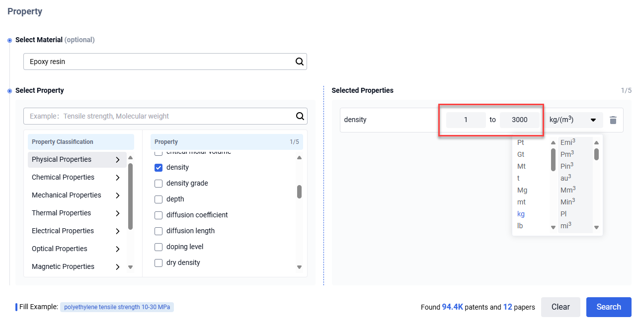 4. Set Measurements: Enter the precise quantitative values for the properties within the specified units. This helps you find materials that meet your exact requirements.