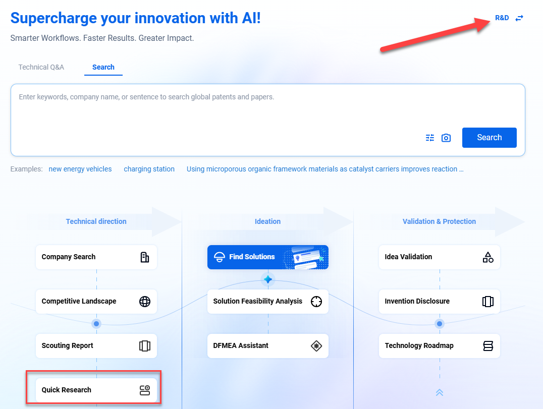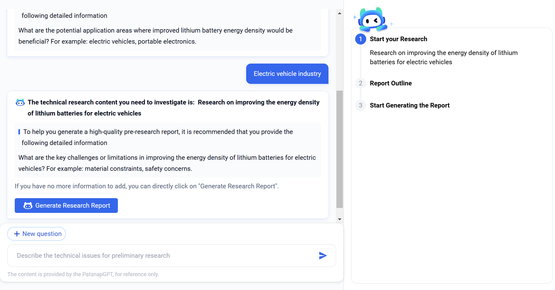 Technological advancements are rapid, making it challenging to define clear R&D directions. Faced with a vast amount of information, it can be difficult to determine which technologies are worth investing in. Eureka provides the "Quick research" tool, which can generate a comprehensive research report in just a few minutes. This tool helps you quickly clarify key information such as technology development trajectories and market demands, enabling proactive decision-making.