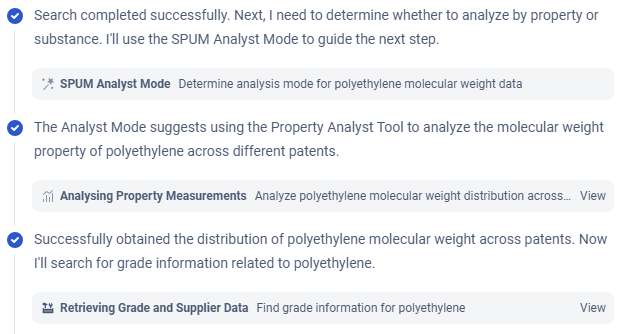 Powered by PatsnapGPT and our proprietary SPUM (Substance Property Unit Measurement) model, this agent is deigned to find materials that match your specified property ranges and provides a comprehensive report on materials suitable for your needs.