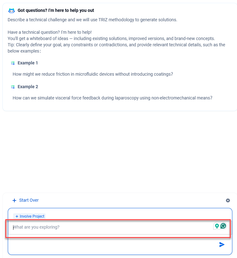 Leveraging TRIZ innovation methodology, this agent assists users in generating technical insights and discovering potential solutions during their research and development process. Based on user-specified technical directions and themes, we develop innovative solutions aligned with their targeted objectives.