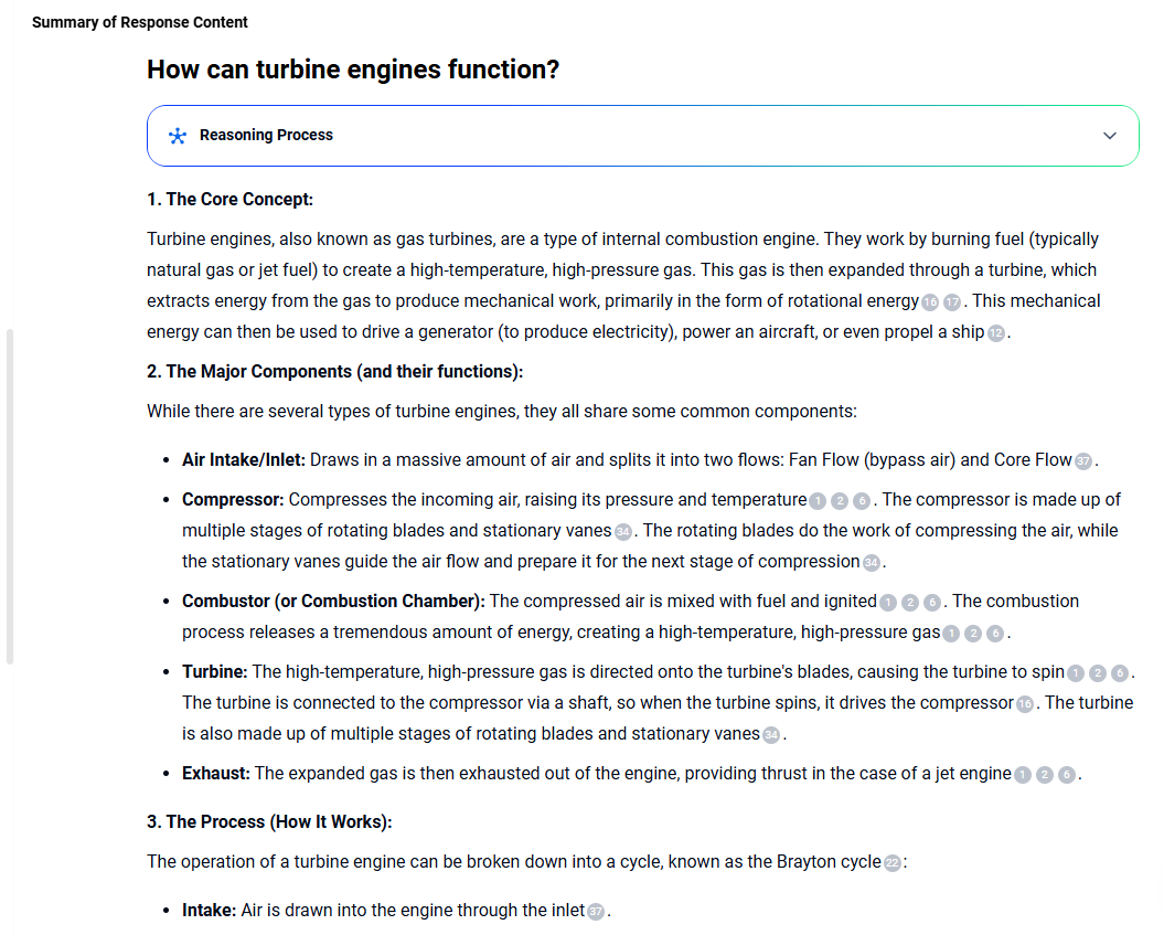 2. Once finished (this may take a few minutes) - your technical Q&A will be finished. Under "Task Result," you can view the one-pager with all the information found. The information provided also includes application cases.