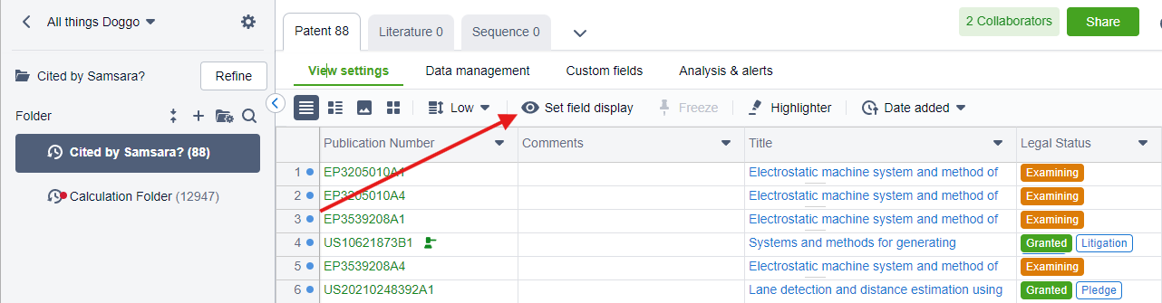 To do this, click on the "Set field display" option within the folder under the "View Settings" tab.