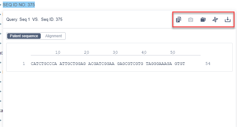 When viewing a patent with sequences, users with access to the Bio platform will see the 'Sequence Assistant' tool near the top right-hand side of the screen. With this tool, you can easily identify sequences in patents, extract them to Bio, and highlight them within the patent.