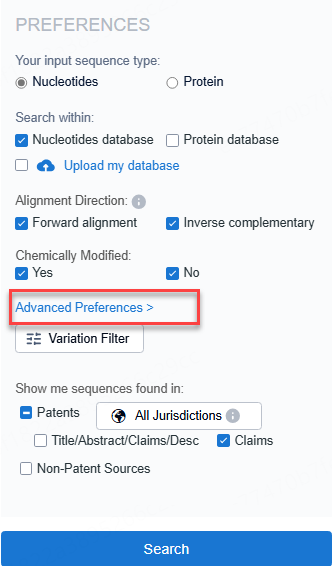Below is a description of the most commonly used advanced preferences available on the Patsnap Bio platform