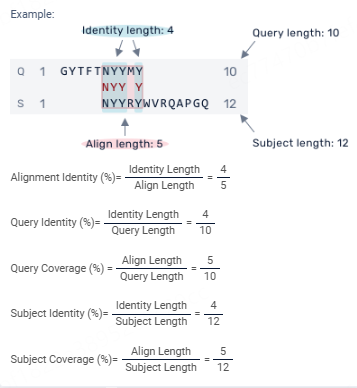 Query Identity (%) - This is the percentage of matching amino acids or nucleotides in the query.