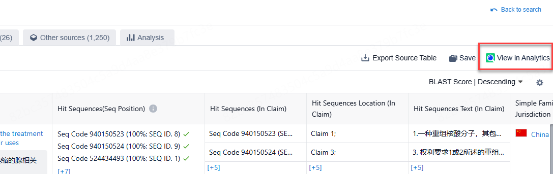 From this page, you can click on "view in Analytics," which will take all the results into Analytics, where they can be stored and further manipulated or interacted with.