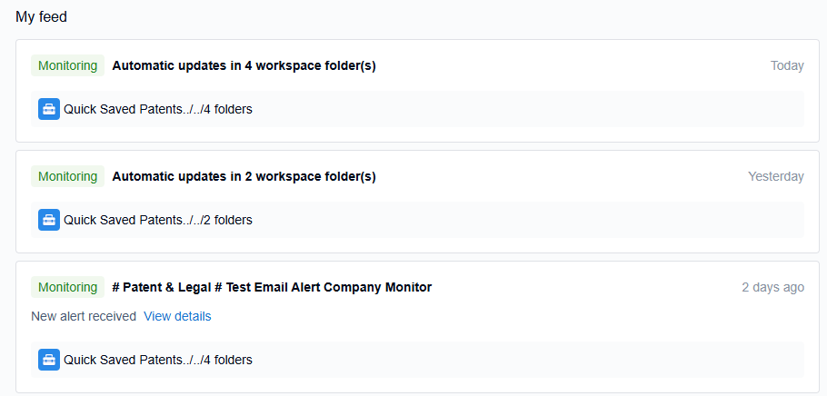 3. Below this, you will see your feed, which provides you with the latest updates on your Workspaces, email alerts and news relating to your previous work.