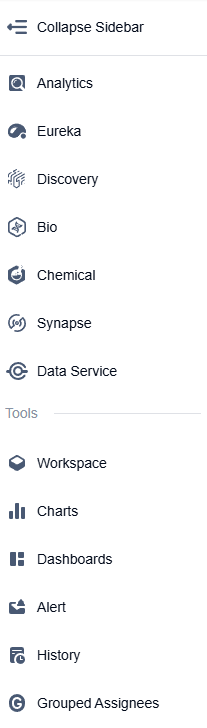 1. Firstly, you will see the left-hand side bar, where you can navigate between the different products that you have access to. You will also see some common tools used across the different products.