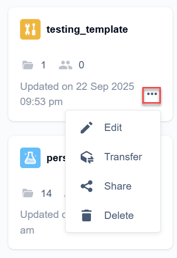 If you click on the 3 dots, you are able to edit, share, transfer, and delete the workspace: