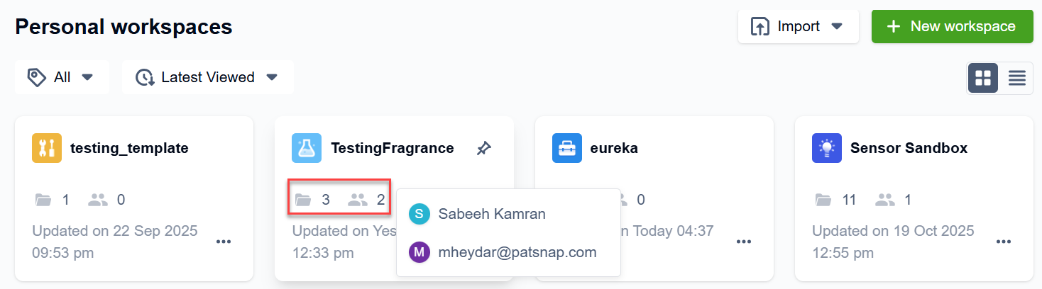 For each Workspace, you are immediately able to see how many folders they have within them and who you have shared the workspace with: