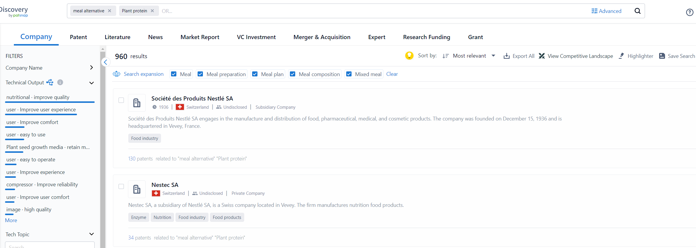 Technology and Competitive Intelligence provides the ability to find both technologies and competitors of interest, with a comprehensive overview of them to provide you with the ability to analyze the market and detect potential threats. Conversely, this can also help identify new and collaboration opportunities.