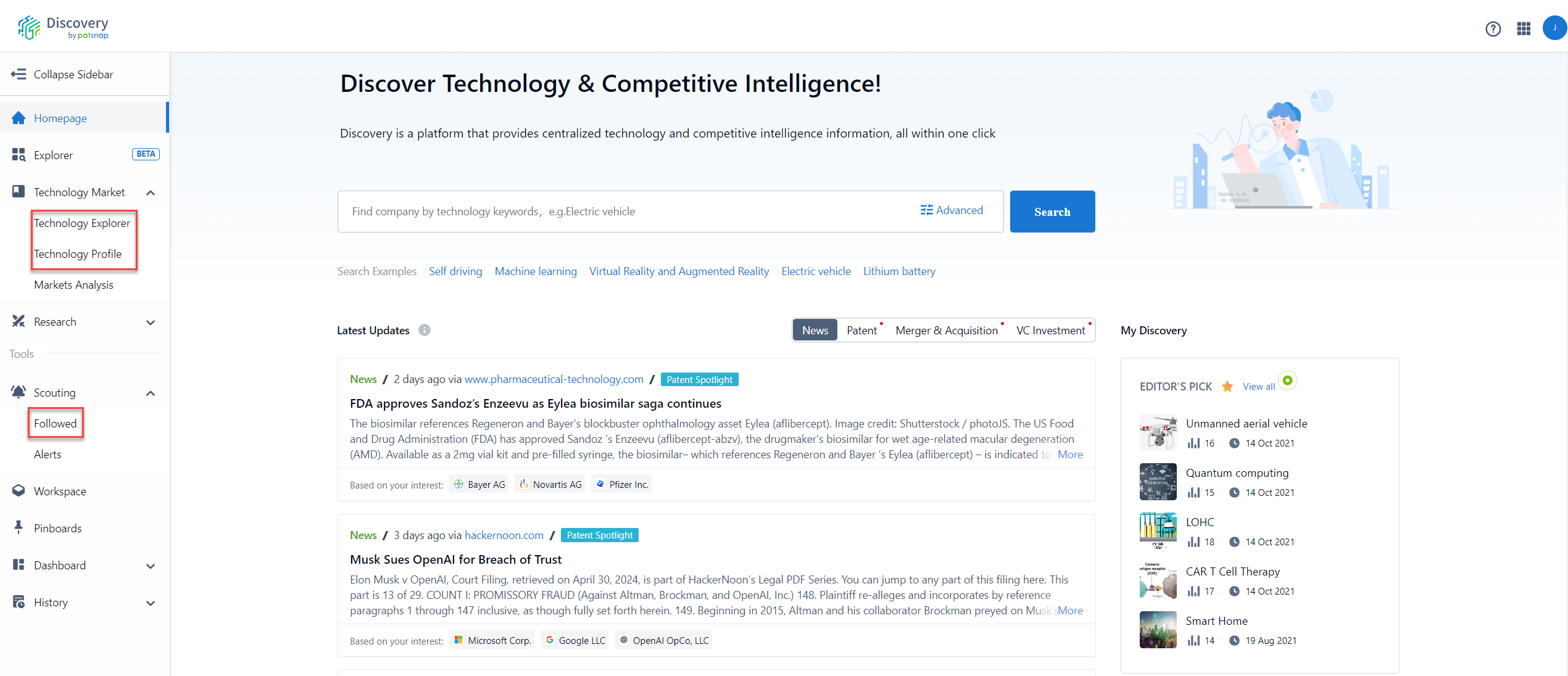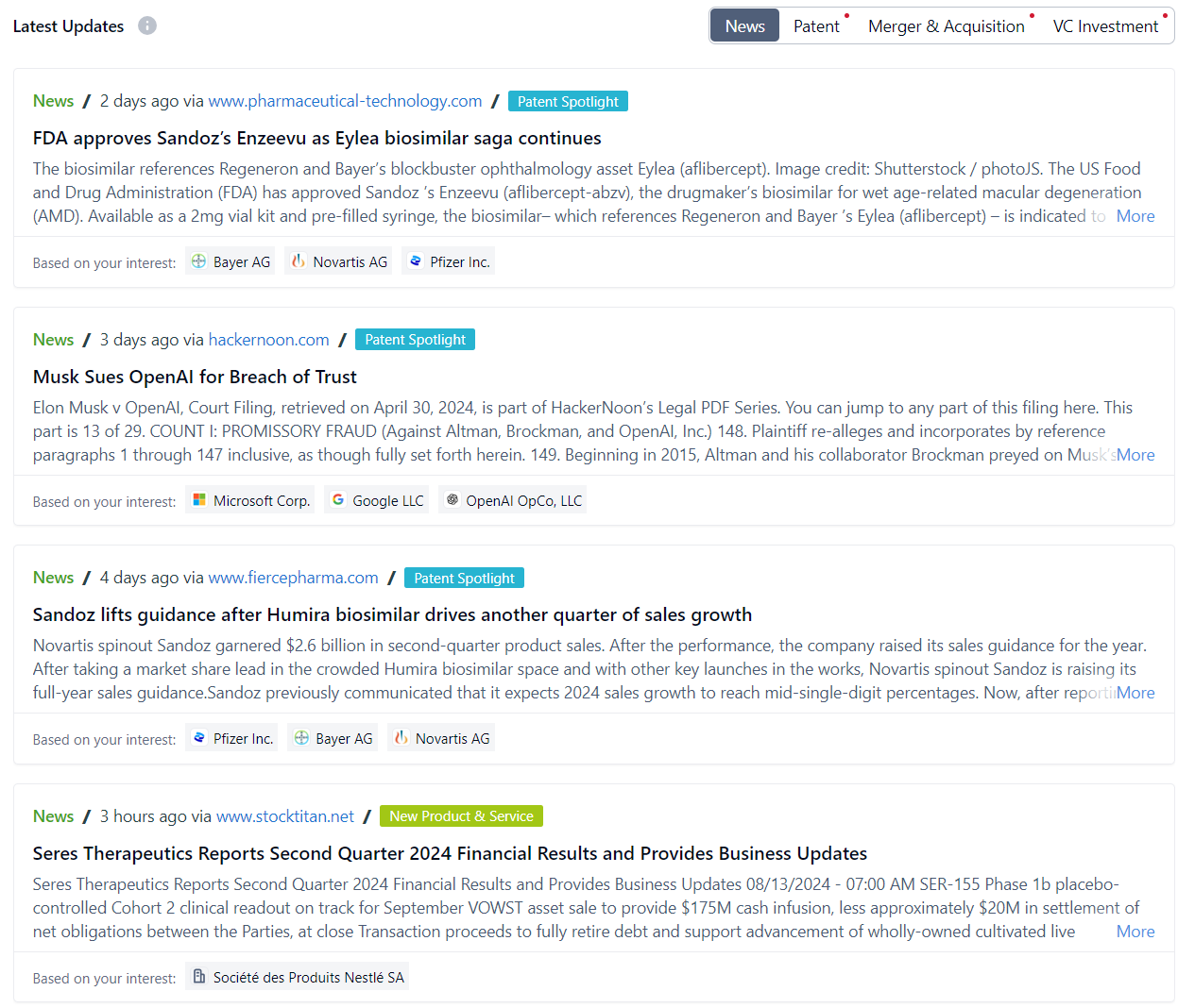 - VC Investment & M&A: This will show you the latest and top VC Investments and M&A's related to this field.