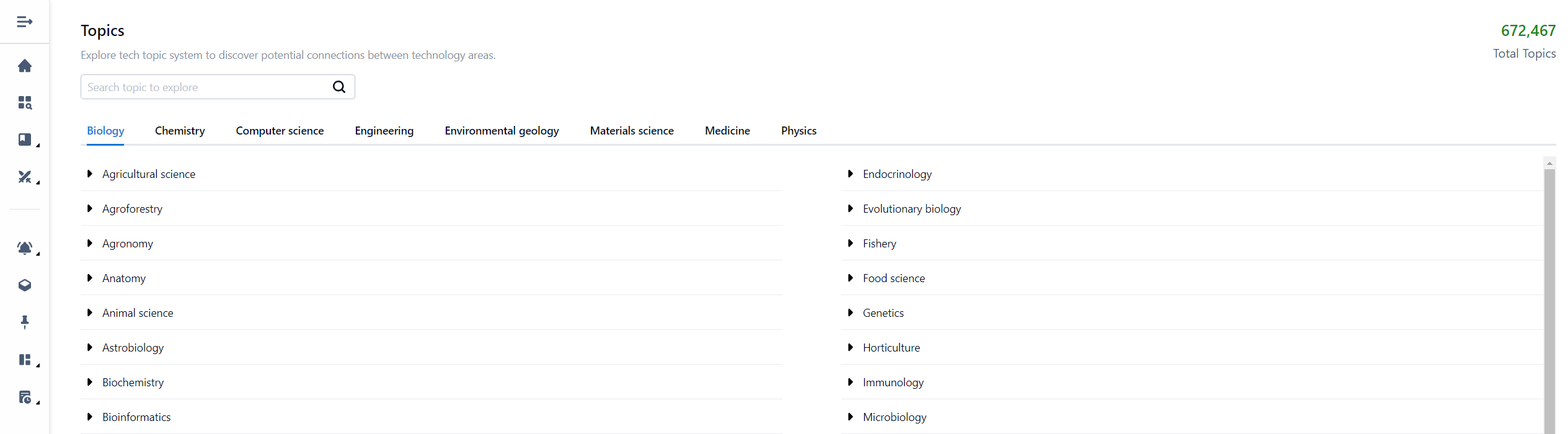If you click on Technology Explorer, you will be directed to the topic browser.