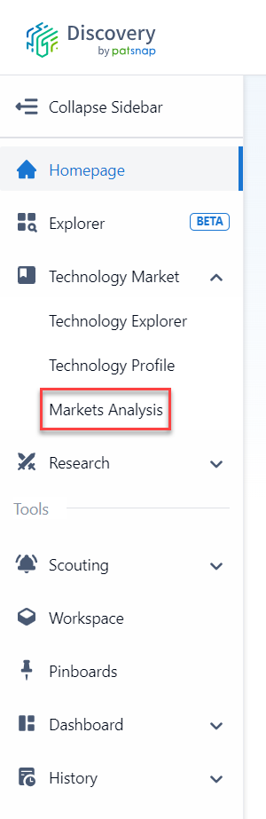 You can find this option by clicking on the option of "Markets Analysis" which can be found in the left-hand navigation page under "Technology Market" on every page within Discovery. This is where you will be able to find all of the hundreds of thousands of market reports; you can also search for a market sector of interest here.