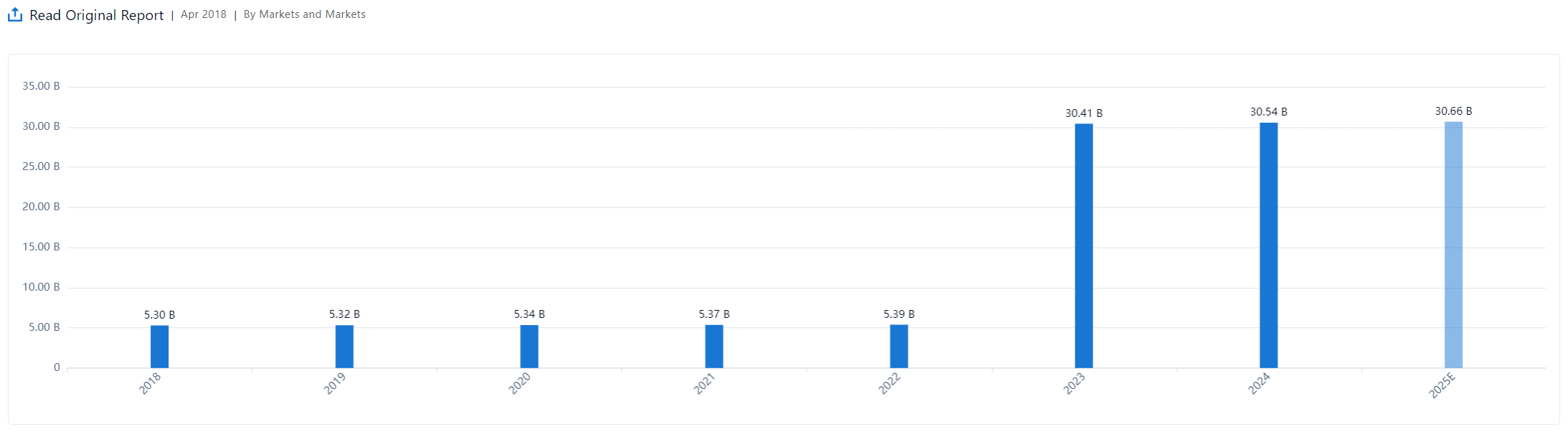 Below this, you are able to read the most recent report and see a trend graph of the predicted size of this market.
