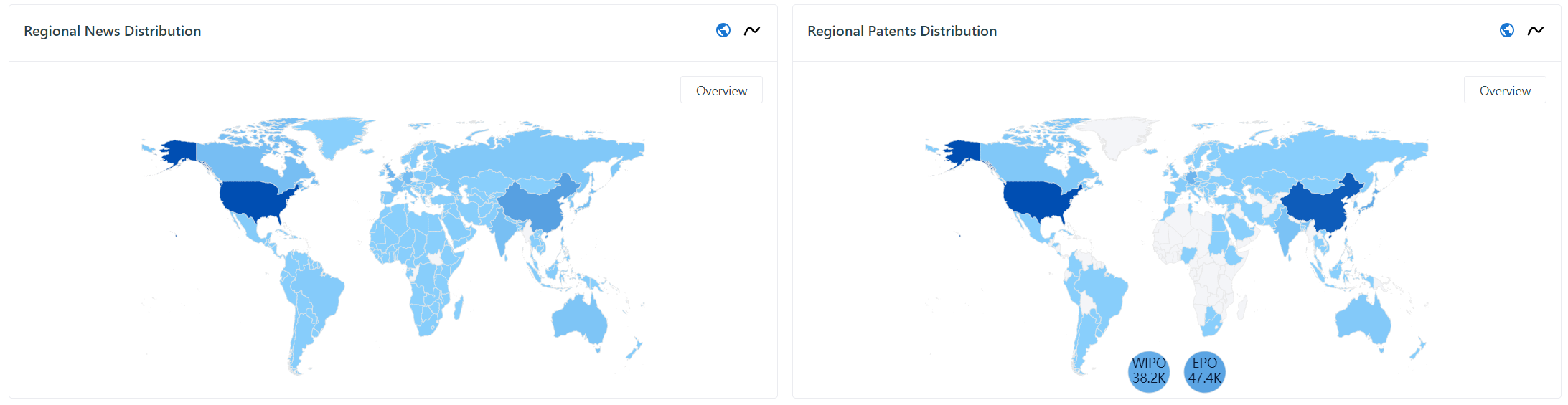 You can then see the key players within this market along with associated news and patents for them within a given time period.