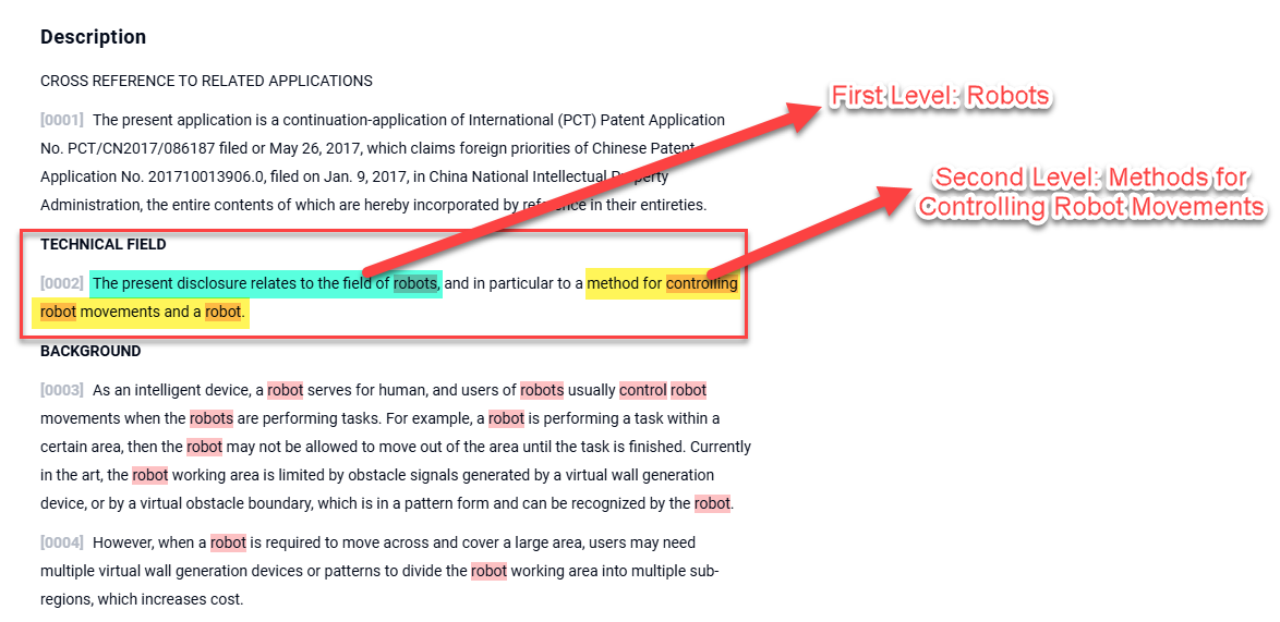 The Technical Field will find the general technical area that the patent pertains to. It will also give a secondary level that gives a slightly more specific technical area.