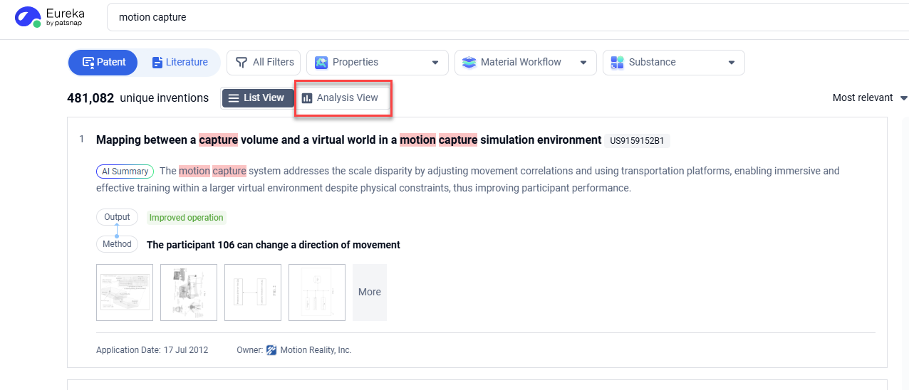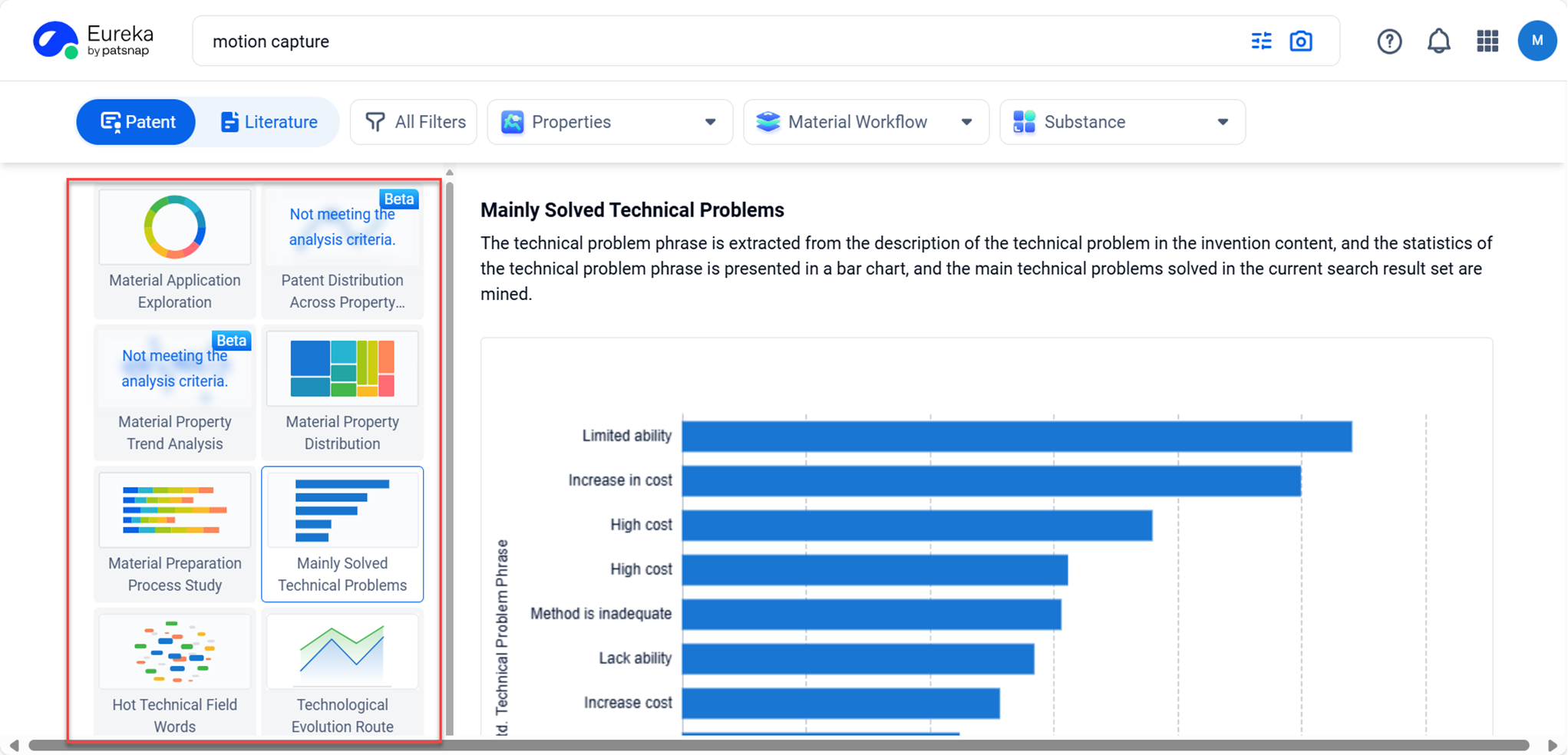 Once you have performed a search in Eureka by Patsnap you are able to perform analysis on it. This will enable you to drill into a technology area or company of interest and see some of the key concepts and trends relating to it.