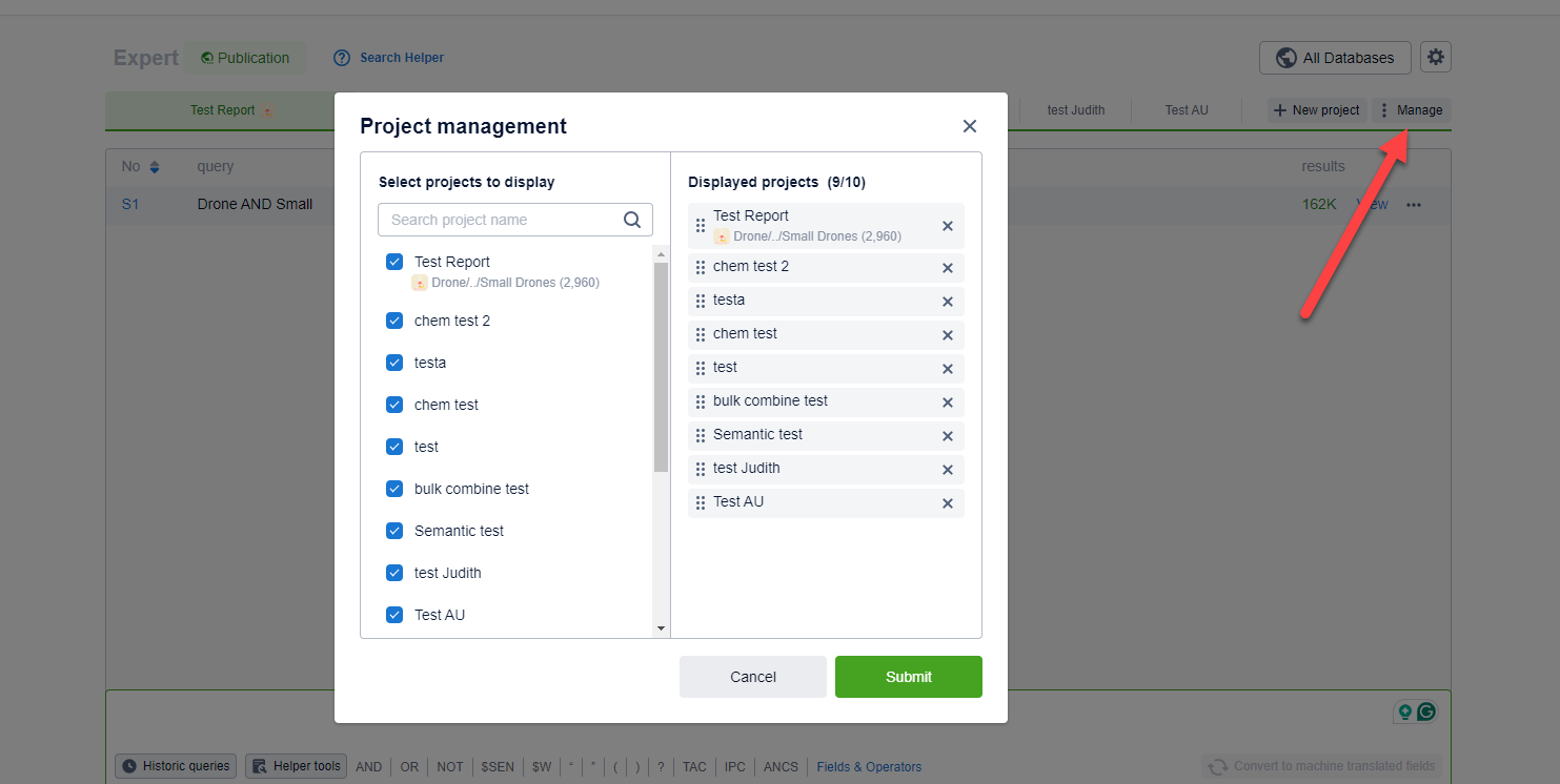 - In Expert search users can create up to 40 projects to help manage their work