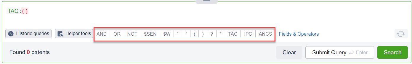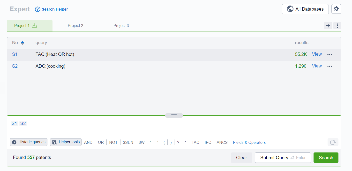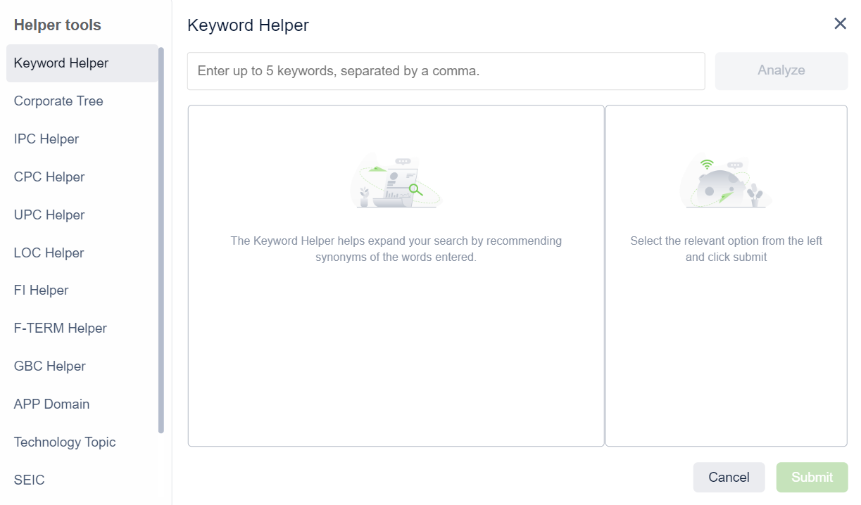 - Users also have access to the helper tool which can help users identify keywords, classification codes, subsidiary companies, application domains, and more