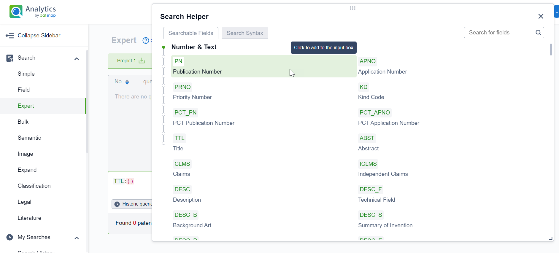 Expert search is a tool that allows users to create search queries by combining and editing queries together. Allowing users to more efficiently create complex queries.