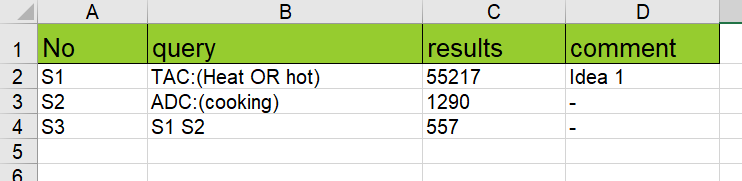 - This will allow users to download an Excel spreadsheet where they can see their submitted queries, the number of results they have, and any comments made